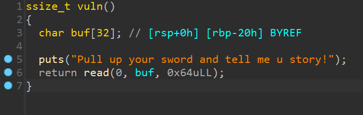 根据IDA加载入main函数声明发现s数组距离rbp的距离为F,即为15,这里的运行环境是64位,所以应当将Caller's rbp的数据填满,在这里是8位,即可构造payload